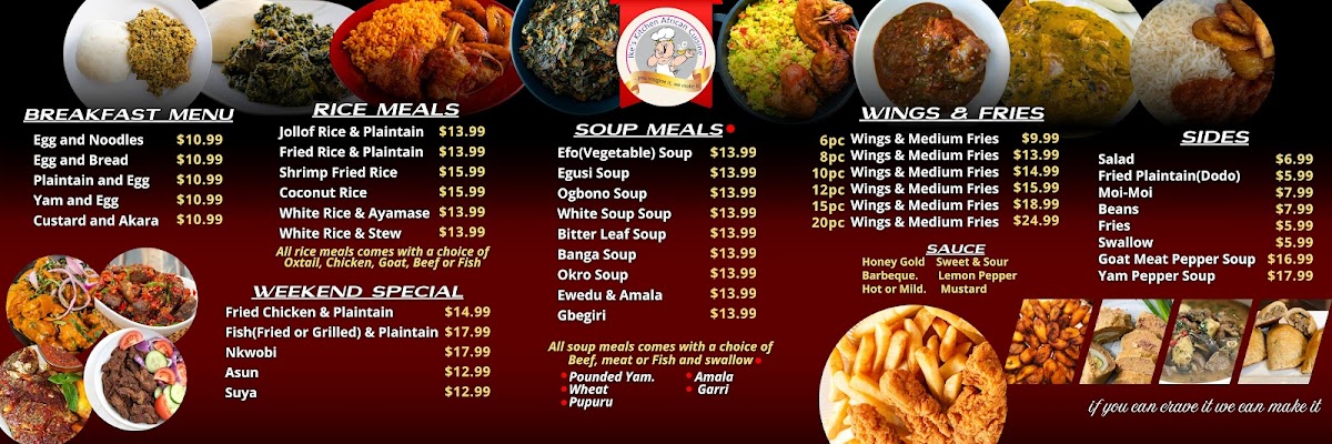 Made with goat meat, crayfish, palm oil, special African spices mixed in spicy pepper sauce.